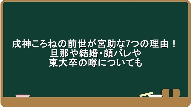 戌神ころねの前世が宮助な7つの理由!旦那や結婚・顔バレや東大卒の噂についても
