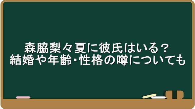 森脇梨々夏に彼氏はいる?結婚や年齢・性格の噂についても