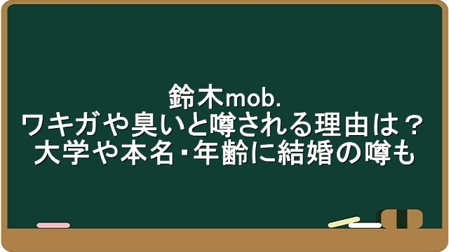 鈴木mob.がワキガや臭いと噂される理由は?大学や本名・年齢に結婚の噂も