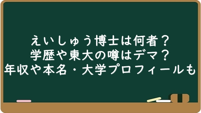 えいしゅう博士は何者?学歴や東大の噂はデマ?年収や本名・大学プロフィールを調査