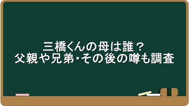 三橋くんの母は誰?父親や兄弟・その後の噂も調査!