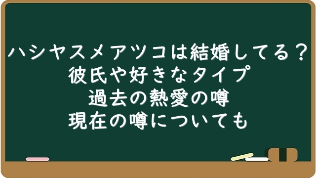 ハシヤスメアツコは結婚してる?彼氏や好きなタイプに熱愛・現在の噂についても