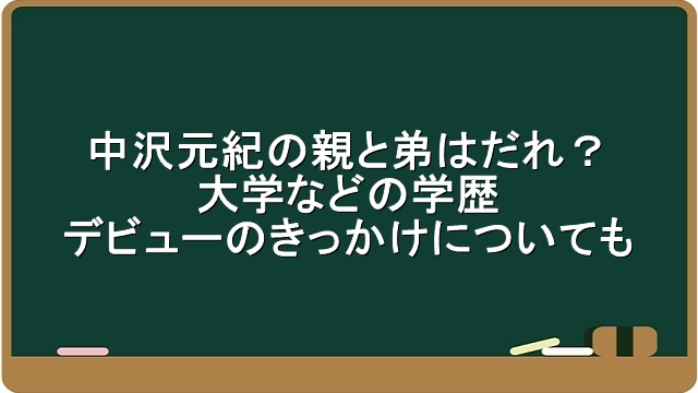 中沢元紀の親と弟はだれ?大学やデビューのきっかけについても