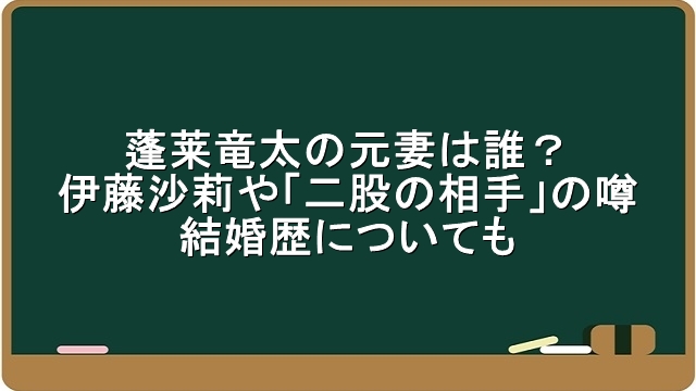 蓬莱竜太の元妻は誰?伊藤沙莉が二股の相手という噂や結婚歴についても