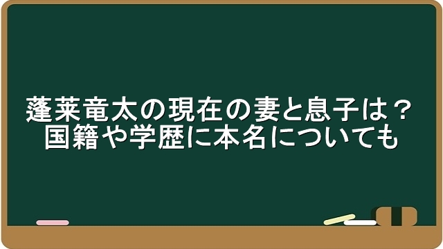 蓬莱竜太の現在の妻と息子は?国籍や学歴に本名についても