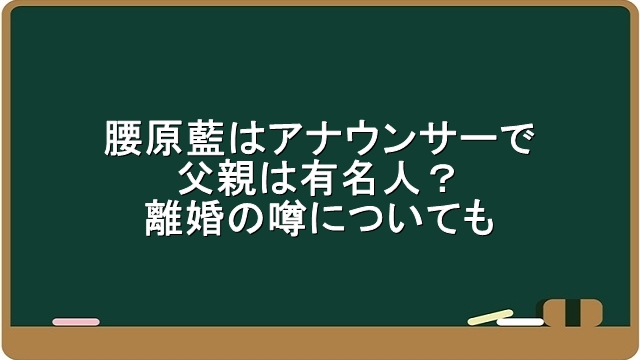 腰原藍はアナウンサーで父親は有名人?離婚の噂についても