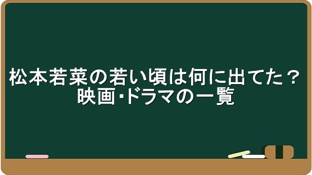 松本若菜の若い頃は何に出てた?映画・ドラマの一覧